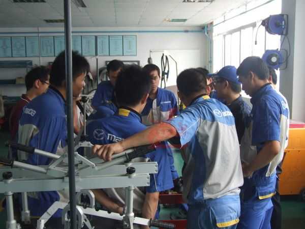全國一汽馬自達(dá)各服務(wù)店都配備具有國際領(lǐng)先的鈑金維修工具設(shè)備,為了最大限度地利用這些高效率的工具設(shè)備,提升鈑金作業(yè)人員的技能及素養(yǎng),并為馬自達(dá)系統(tǒng)的售后服務(wù)體系打造一支鈑金維修技術(shù)過硬的隊(duì)伍。經(jīng)過一汽馬自達(dá)集團(tuán)服務(wù)部統(tǒng)籌與組織,來自全國各地一汽馬自達(dá)服務(wù)店D0910班的第十期培訓(xùn)學(xué)員,于2009年10月14日到珠海接受鈑金技術(shù)提升培訓(xùn)。